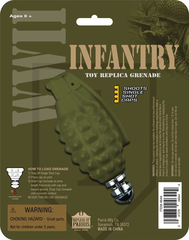Grenade can be loaded with a #917 cap and will fire off when dropped.