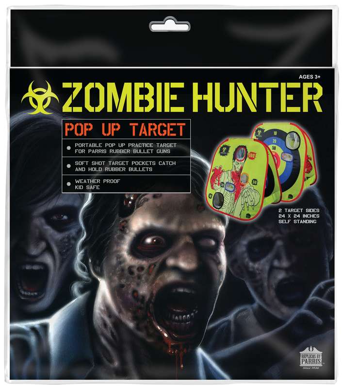 The Zombie Target is a pop-up target when setup measures 24″ x 24″ x 12″.